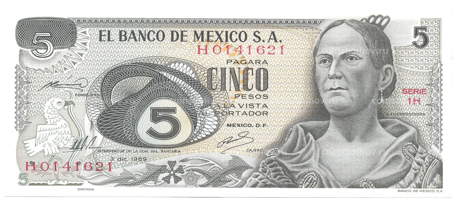 5 песо 1969 года Мексика