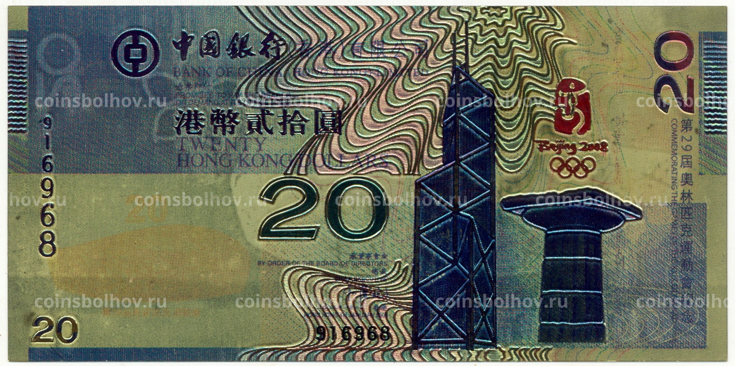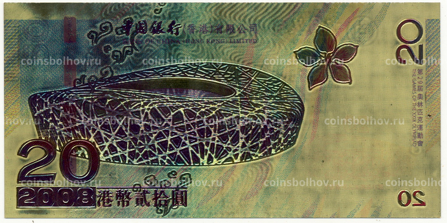 Сувенирная банкнота 20 долларов 2008 года Гонконг «Олимпиада в Пекине»