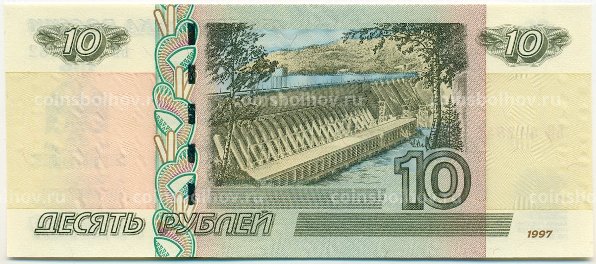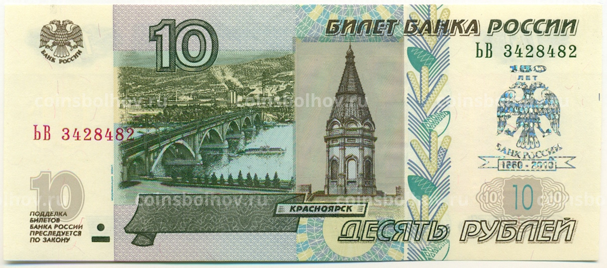 10 рублей 1997 года (Модификация 2004 года) Надпечатка «150 лет Банку России»