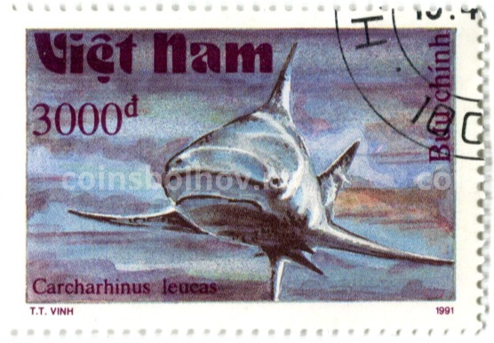 Марка «Тупорылая акула» 1991 год Вьетнам