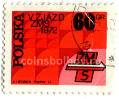Марка «5 -й съезд Социалистического союза молодежи» 1972 год Польша
