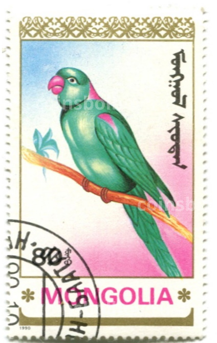 Марка 80 мунгу «Попугаи» 1990 год Монголия