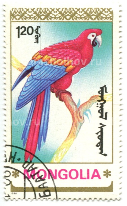 Марка 120 мунгу «Попугаи» 1990 год Монголия