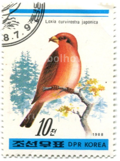 Марка «Клест -еловик» 1988 год Северная Корея