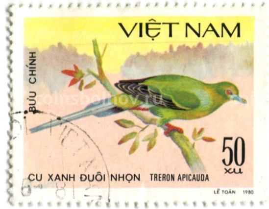Марка «Острохвостый зеленый голубь» 1980 год Вьетнам