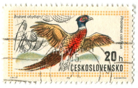 Марка «Фазан обыкновенный» 1971 год Чехословакия
