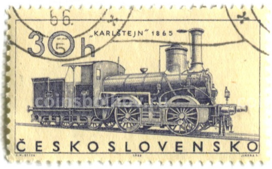 Марка «Паровоз Карлштейн 1865 год» 1965 год Чехословакия