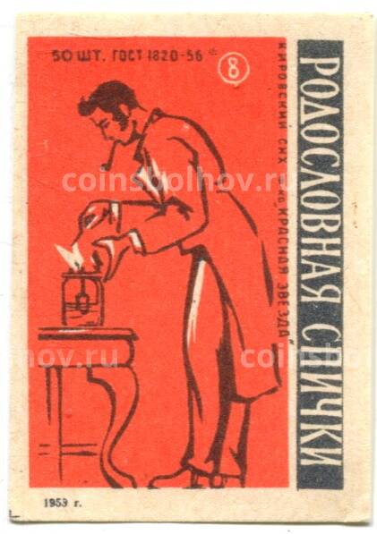 Этикетка спичечная Родословная спички № 8 фабрика «Красная звезда»