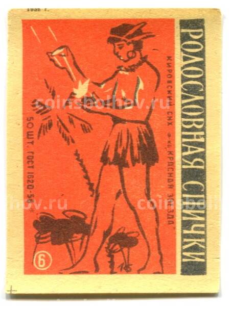 Этикетка спичечная Родословная спички № 6 фабрика «Красная звезда»