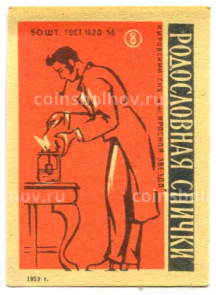 Этикетка спичечная Родословная спички № 8 фабрика «Красная звезда»
