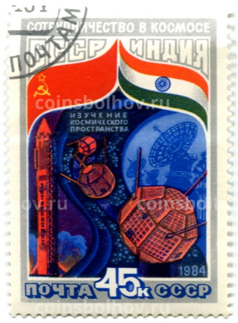 Марка «СССР — Индия «Сотрудничество в космосе (изучение космического пространства)» 1982 год