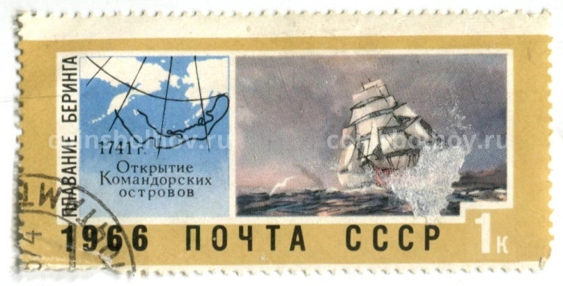 Марка «Плавание Беринга — Открытие командорских островов» 1966 год