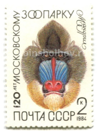 Марка «120 лет московскому зоопарку — Мандрил» 1984 год