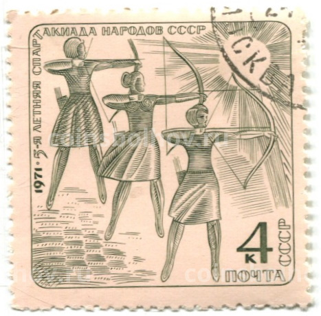 Марка «5-я летняя спартакиада народов СССР (стрельба из лука)» 1971 год