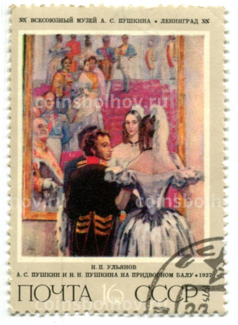 Марка «Н.П.Ульянов А.С.Пушкин и Н.Н.Пушкина на придворном балу»1937 год