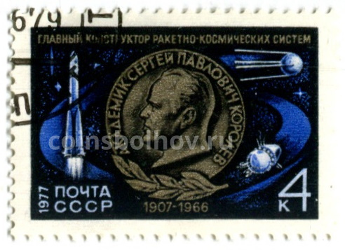 Марка « Главный конструктор ракетно-космических систем С.П.Королев» 1977 год