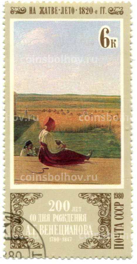 Марка «А.Г.Венецианов На жатве.Лето» 1820-е годы