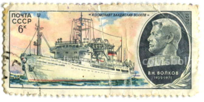 Марка Научно-исследовательское судно «Космонавт Владислав Волков» 1980 год