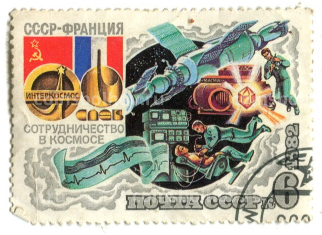 Марка «Сотрудничество в космосе СССР — Франция (на орбите)» 1982 год