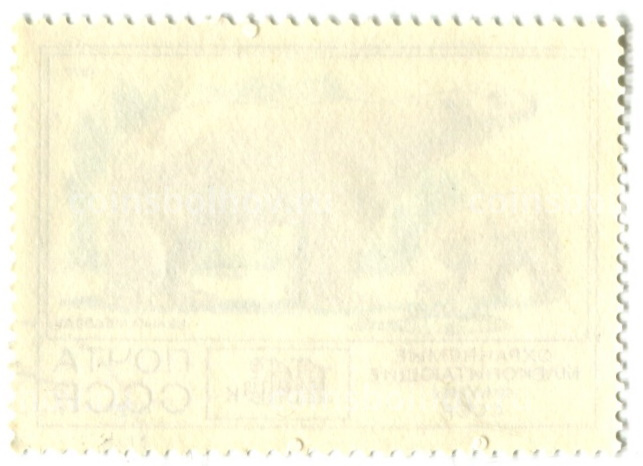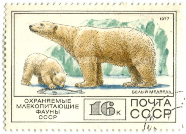 Марка «Охраняемые млекопитающие фауны СССР — Белый медведь» 1977 год