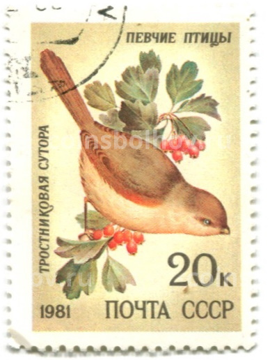 Марка «Певчие птицы — Тростниковая сутора» 1981 год