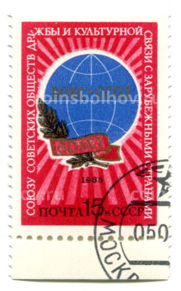 Марка «60 лет союзу Советских обществ дружбы и культурной связи с зарубежными странами» 1985 год