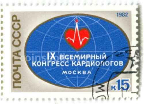 Марка «IX Всемирный конгресс Кардиологов» 1982 год