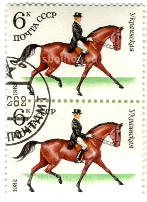 Марка «Украинская порода лошадей» 1982 год (блок из 2 марок)