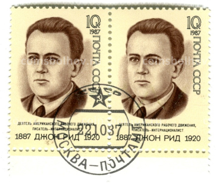 Марка «Джон Рид — деятель американского рабочего движения, писатель» 1987 год (блок из 2 марок)