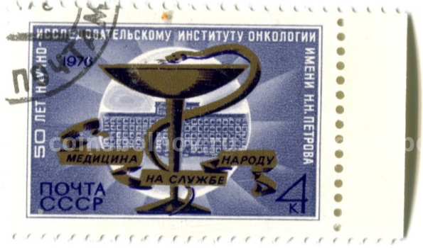 Марка «50 лет научно-исследовательскому институту онкологии имени Н.Н.Петрова» 1974 год