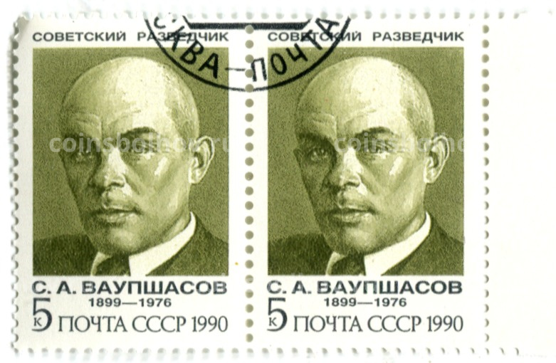 Марка «С.А. Ваупшасов — Советский разведчик» 1990 год (блок из 2 марок)