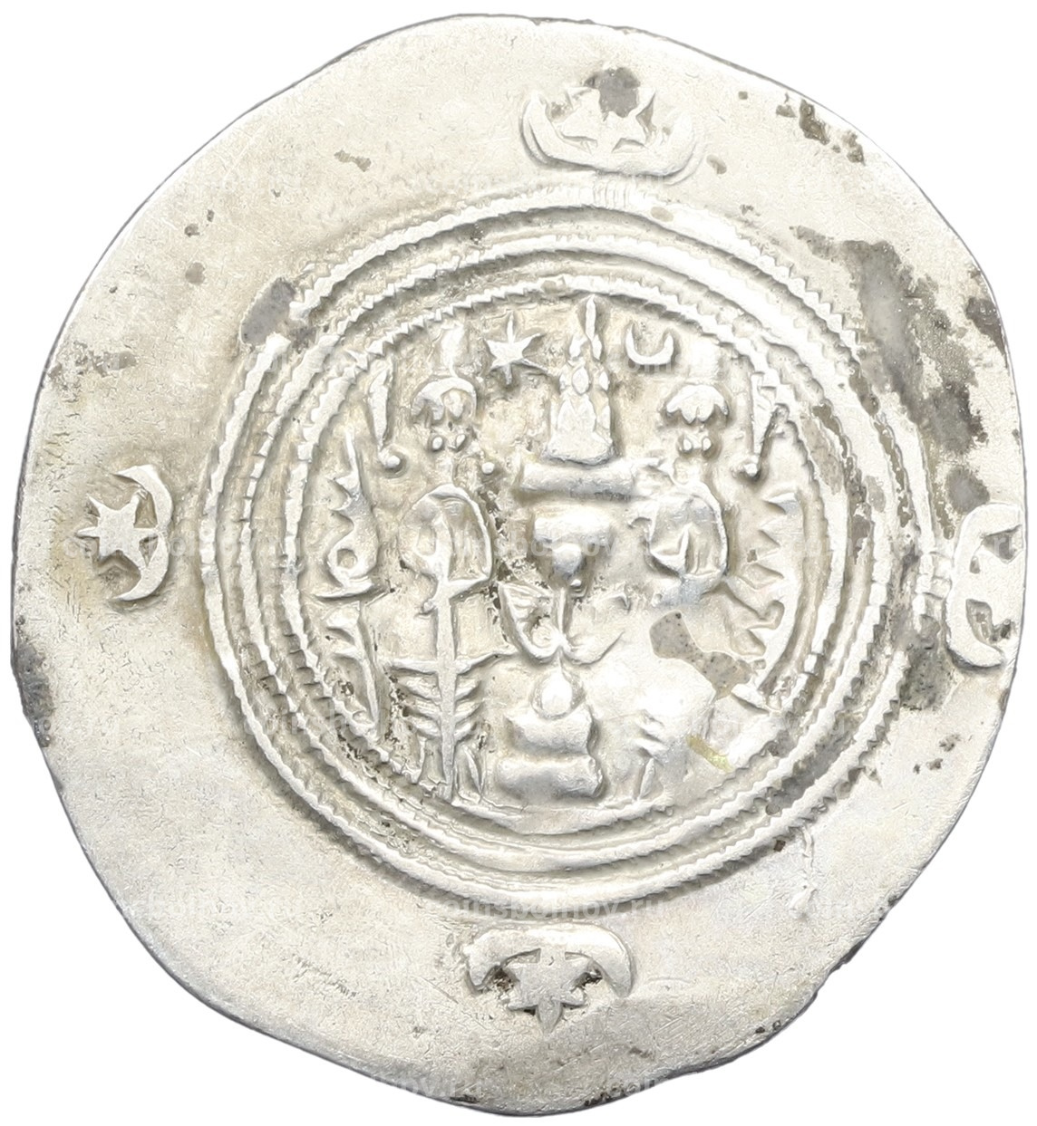 Монета Драхма 591-628 года Сасаниды — Хосров II