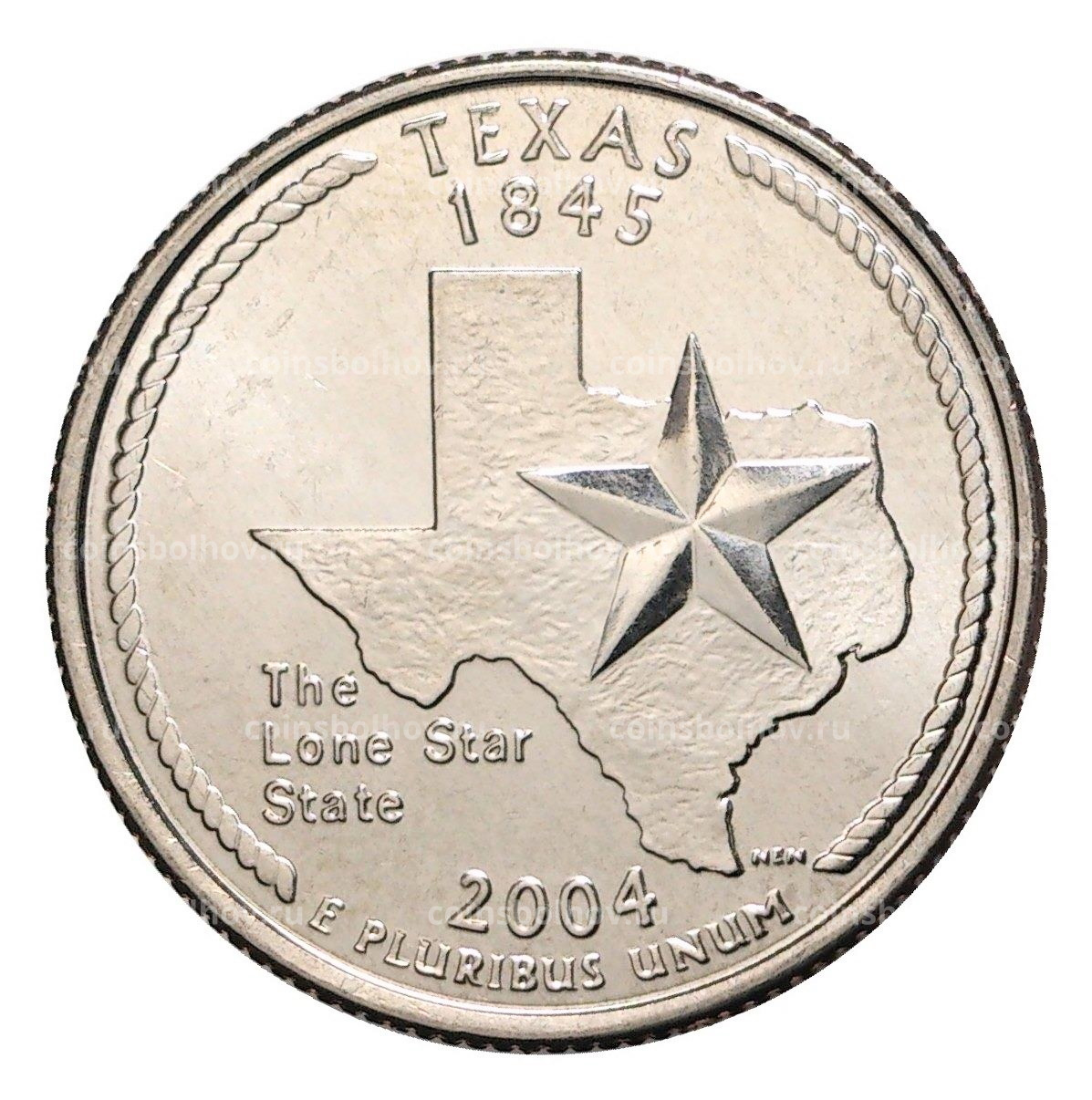 Монета 25 центов (1/4 доллара) 2004 года Р США Штаты и территории — Техас