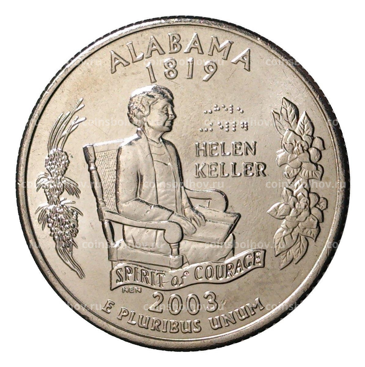 Монета 25 центов (1/4 доллара) 2003 года D США Штаты и территории — Алабама