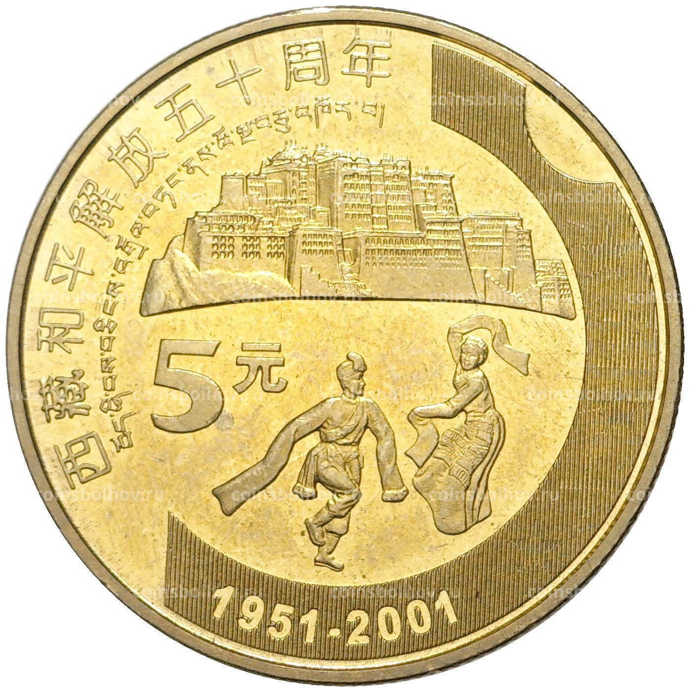 5 юаней 2001 года Китай — 50 лет присоединению Тибета к Китаю
