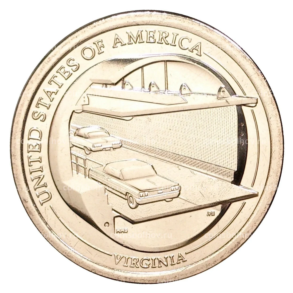 Монета 1 доллар 2021 года D США — Американские инновации -Мост-тоннель через Чесапикский залив