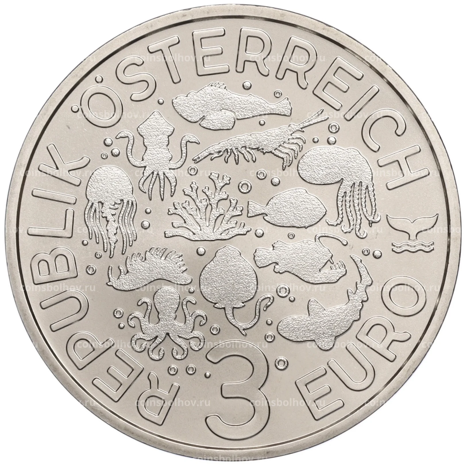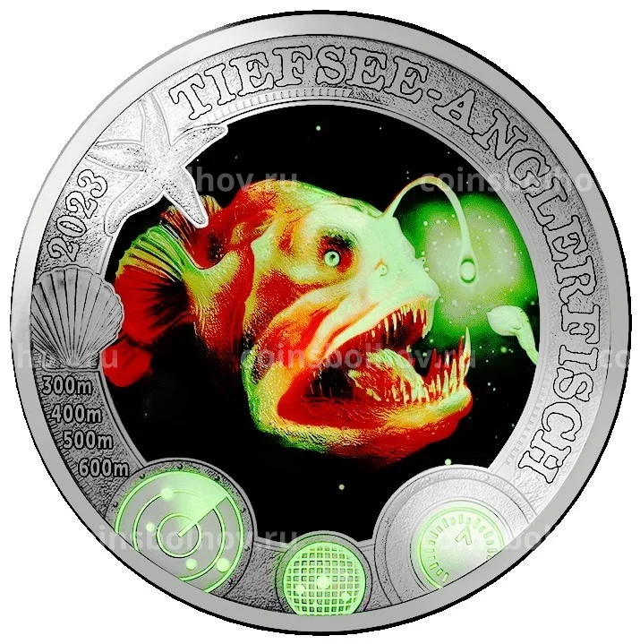Монета 3 евро 2023 года Австрия «Светящаяся морская жизнь — Рыба удильщик (Морской черт)»