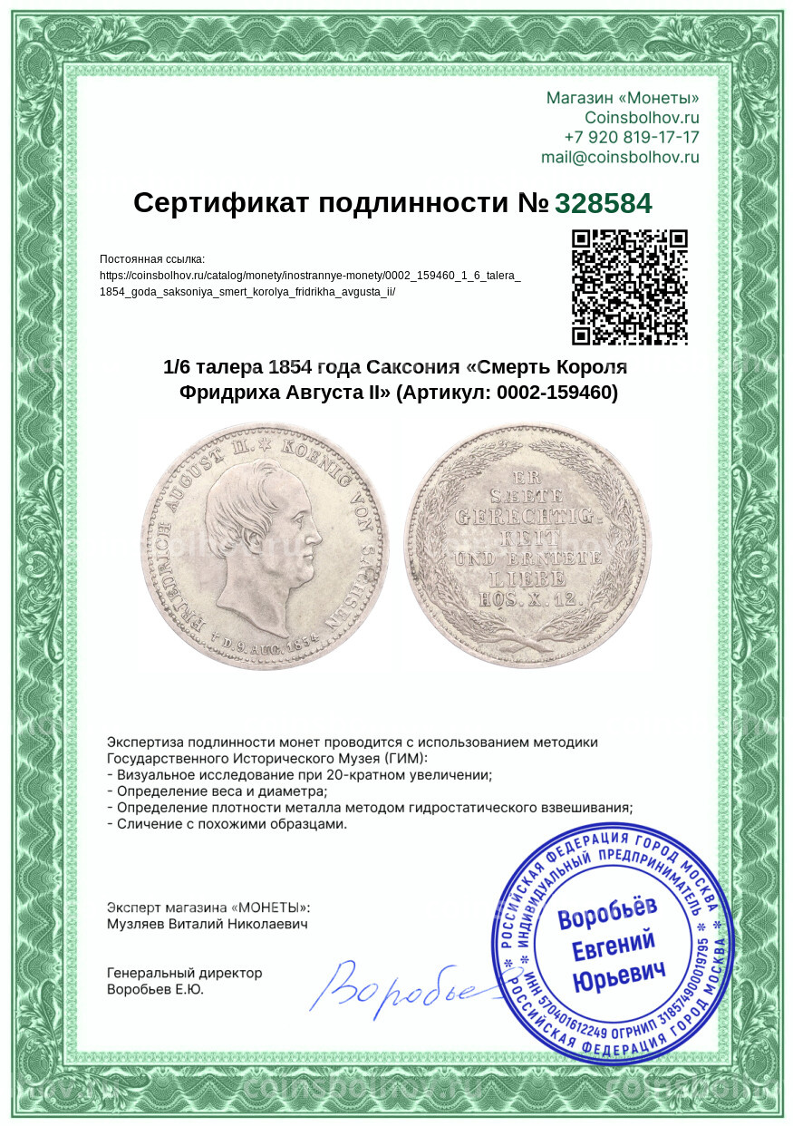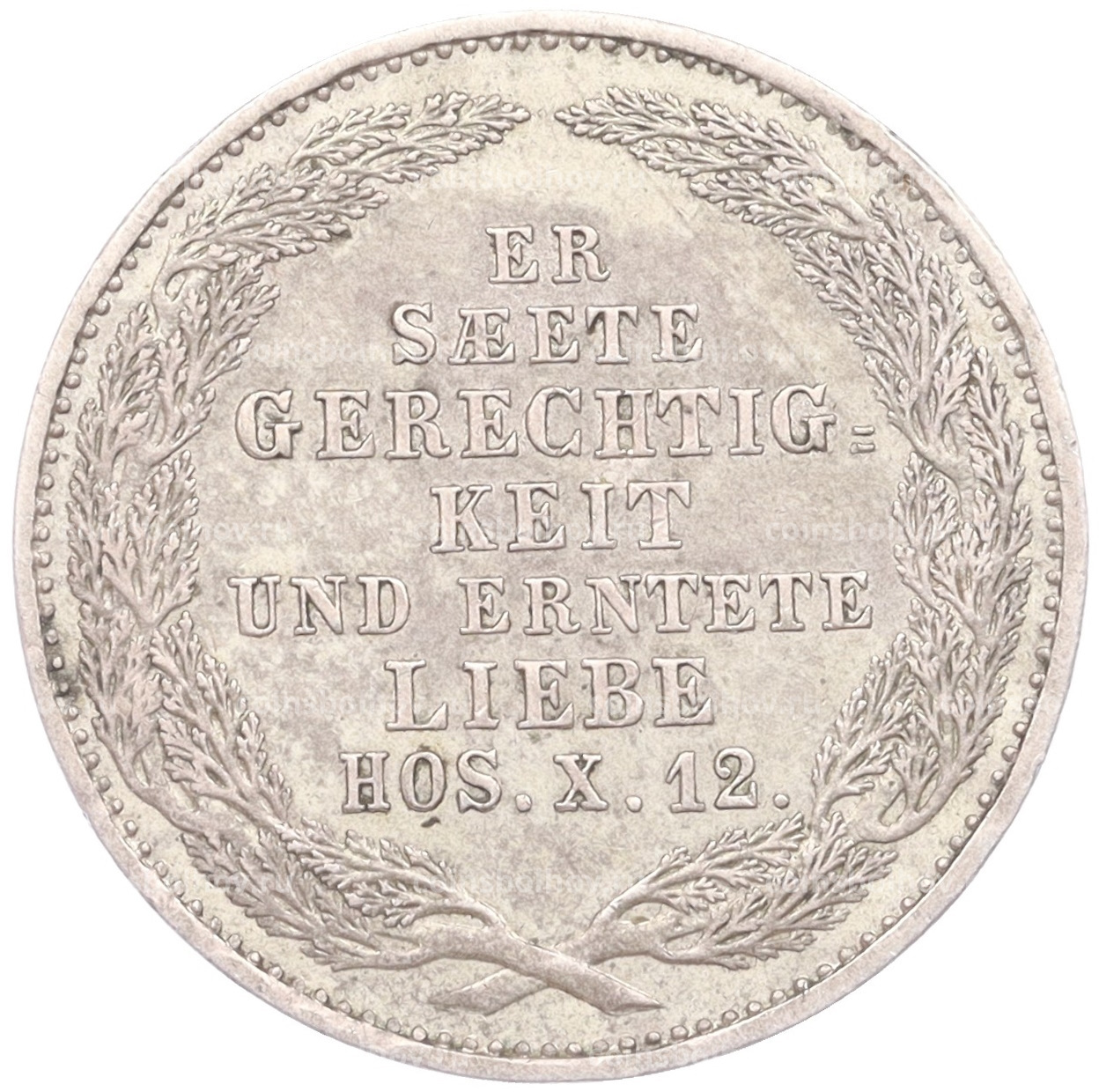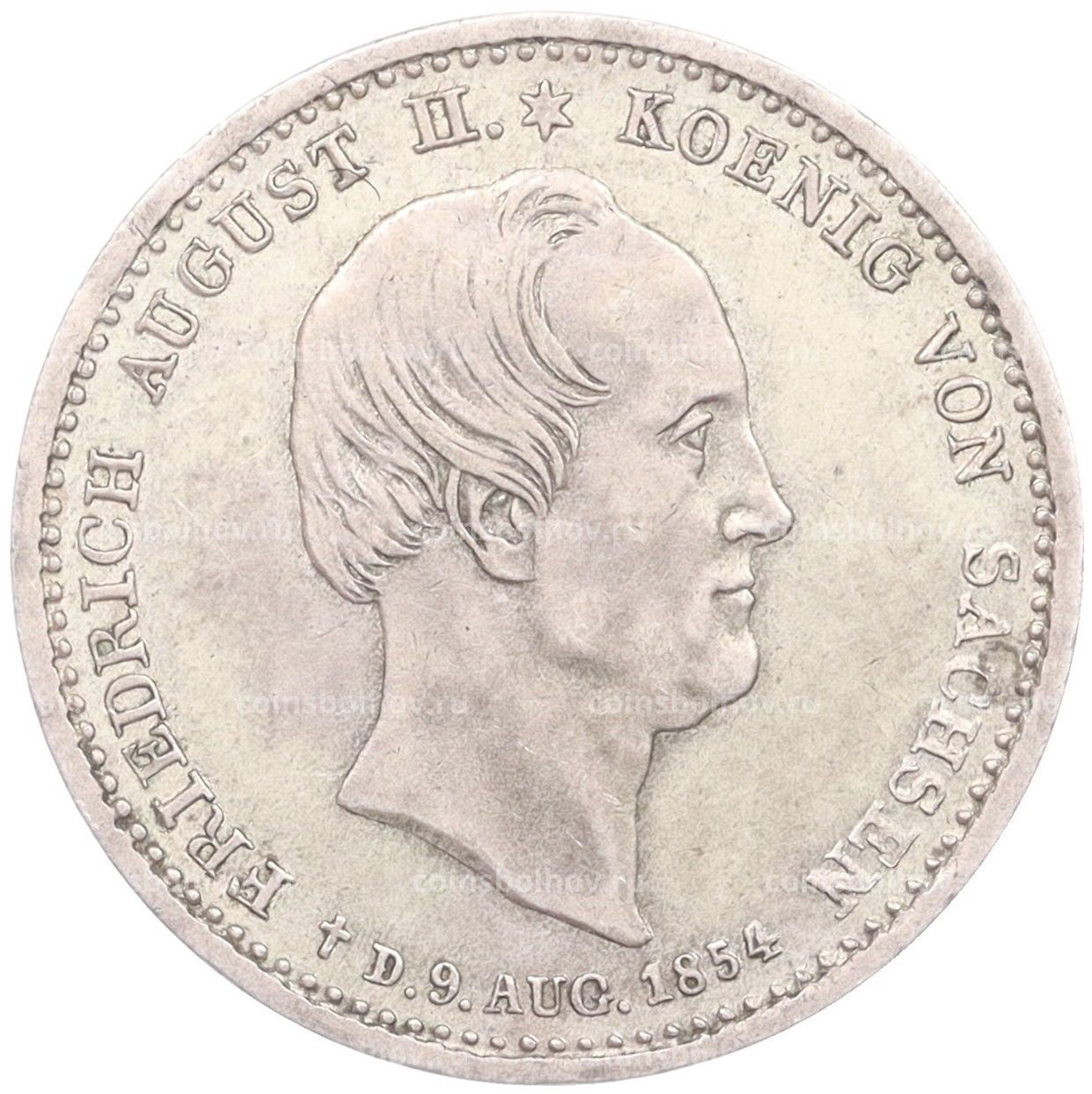 Монета 1/6 талера 1854 года Саксония «Смерть Короля Фридриха Августа II»