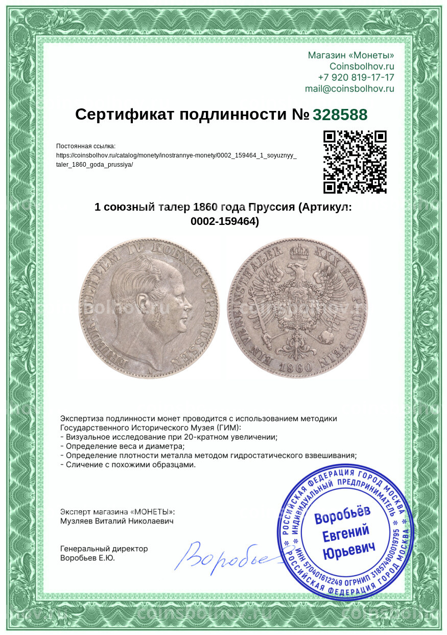 - Номинал 1 талер