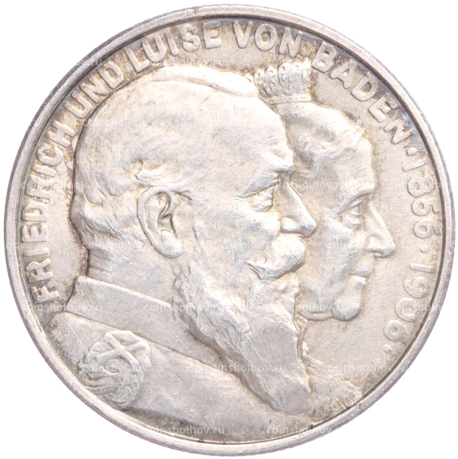 Монета 2 марки 1906 года Германия (Баден) «50 лет свадьбе Фридриха I и Луизы Прусской»