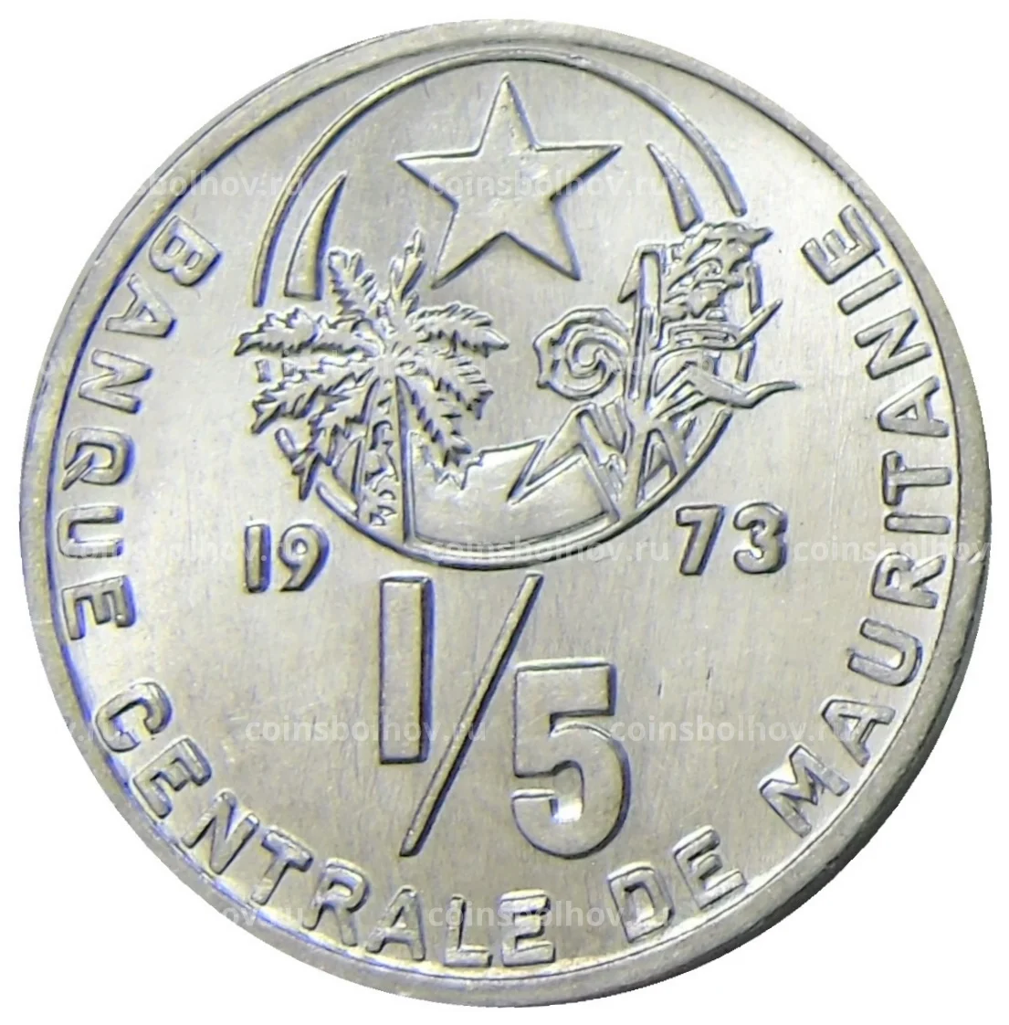 Монета 1/5 угии 1973 года Мавритания