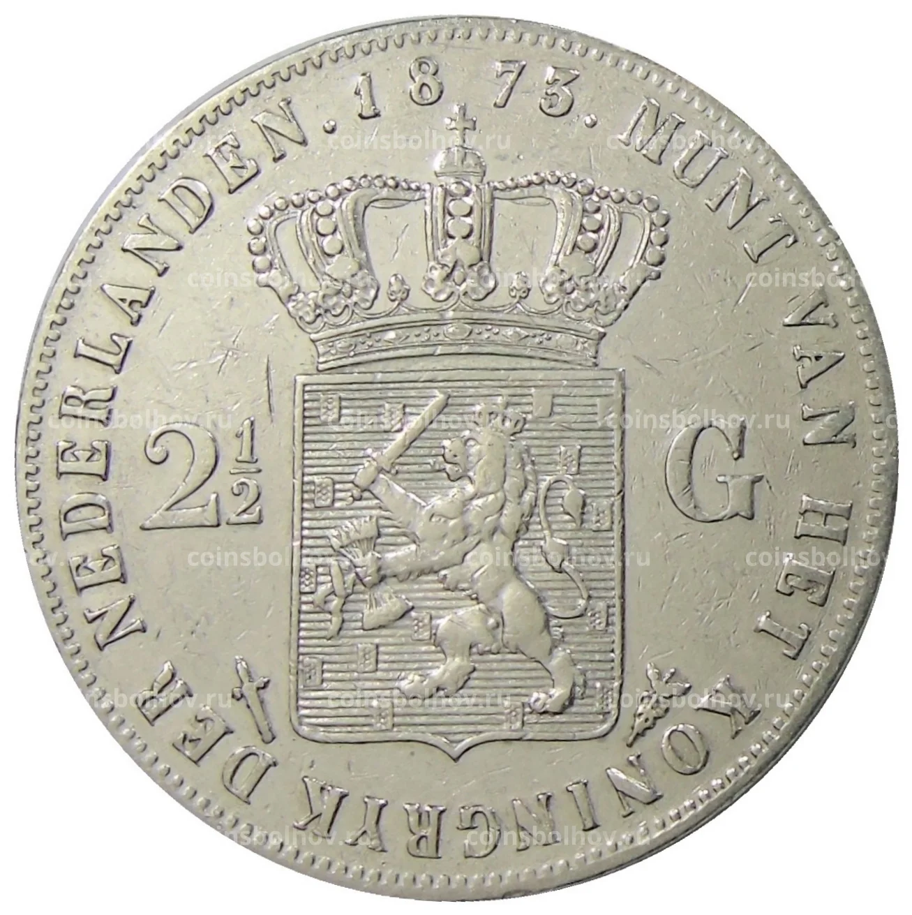 Монета 2 1/2 гульдена 1873 года Нидерланды