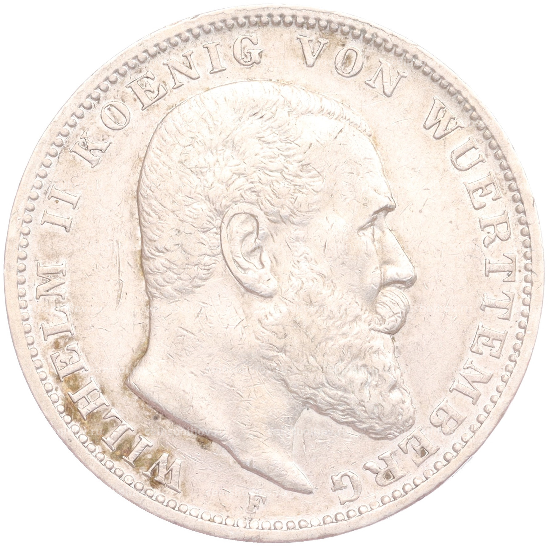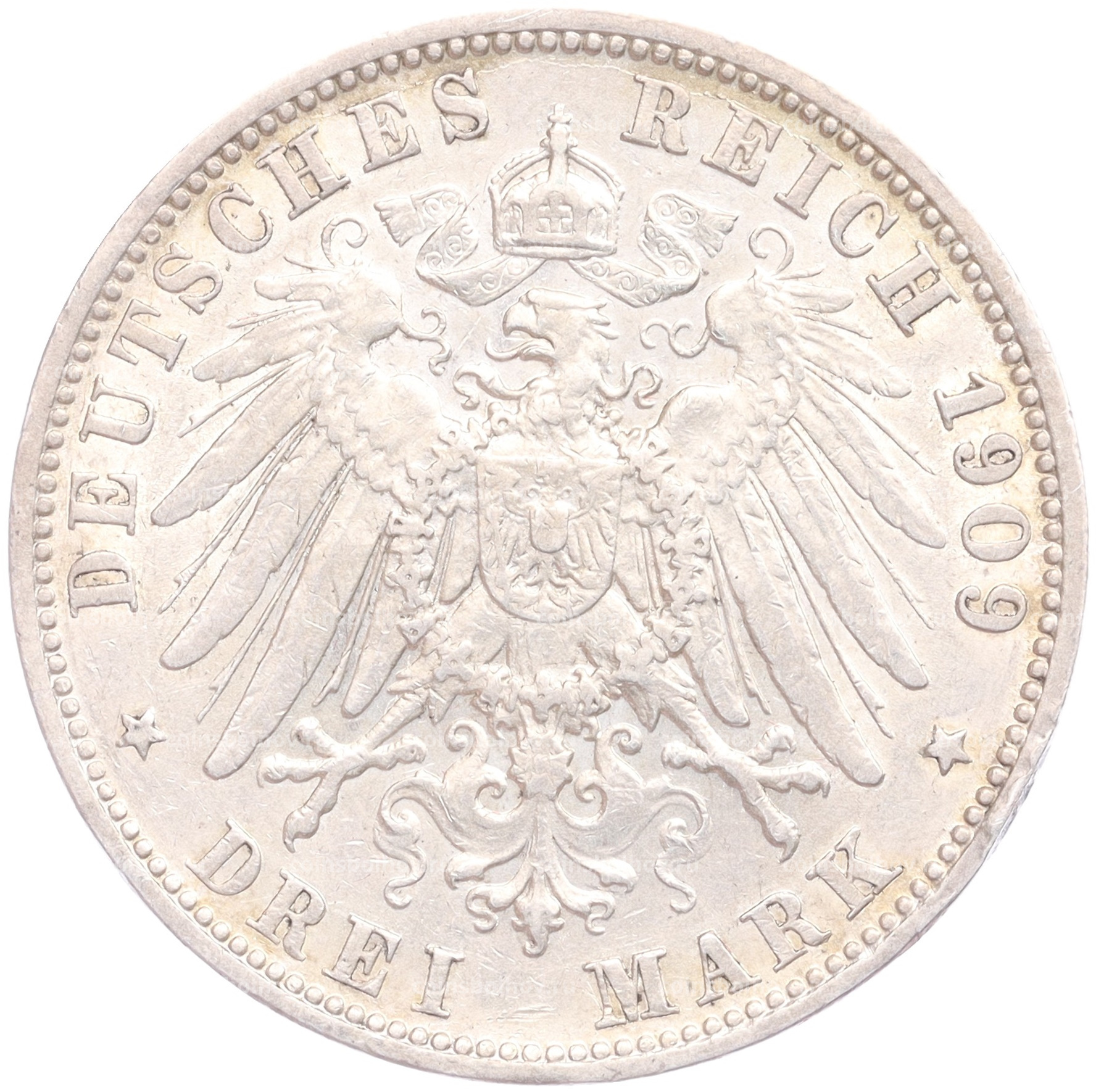Монета 3 марки 1909 года F Германия (Вюртемберг)