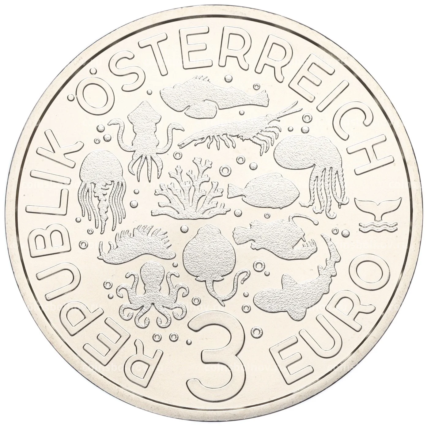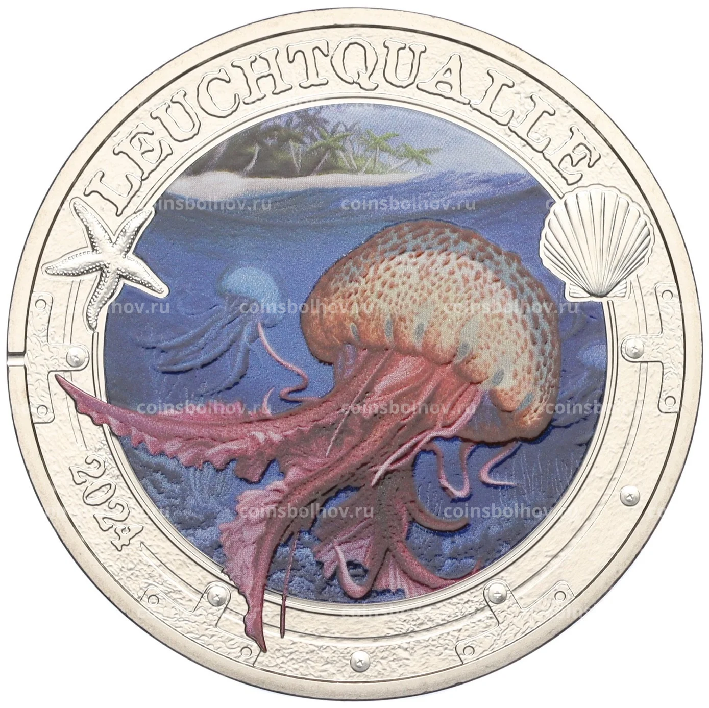 Монета 3 евро 2024 года Австрия «Светящаяся морская жизнь — Светящаяся медуза»