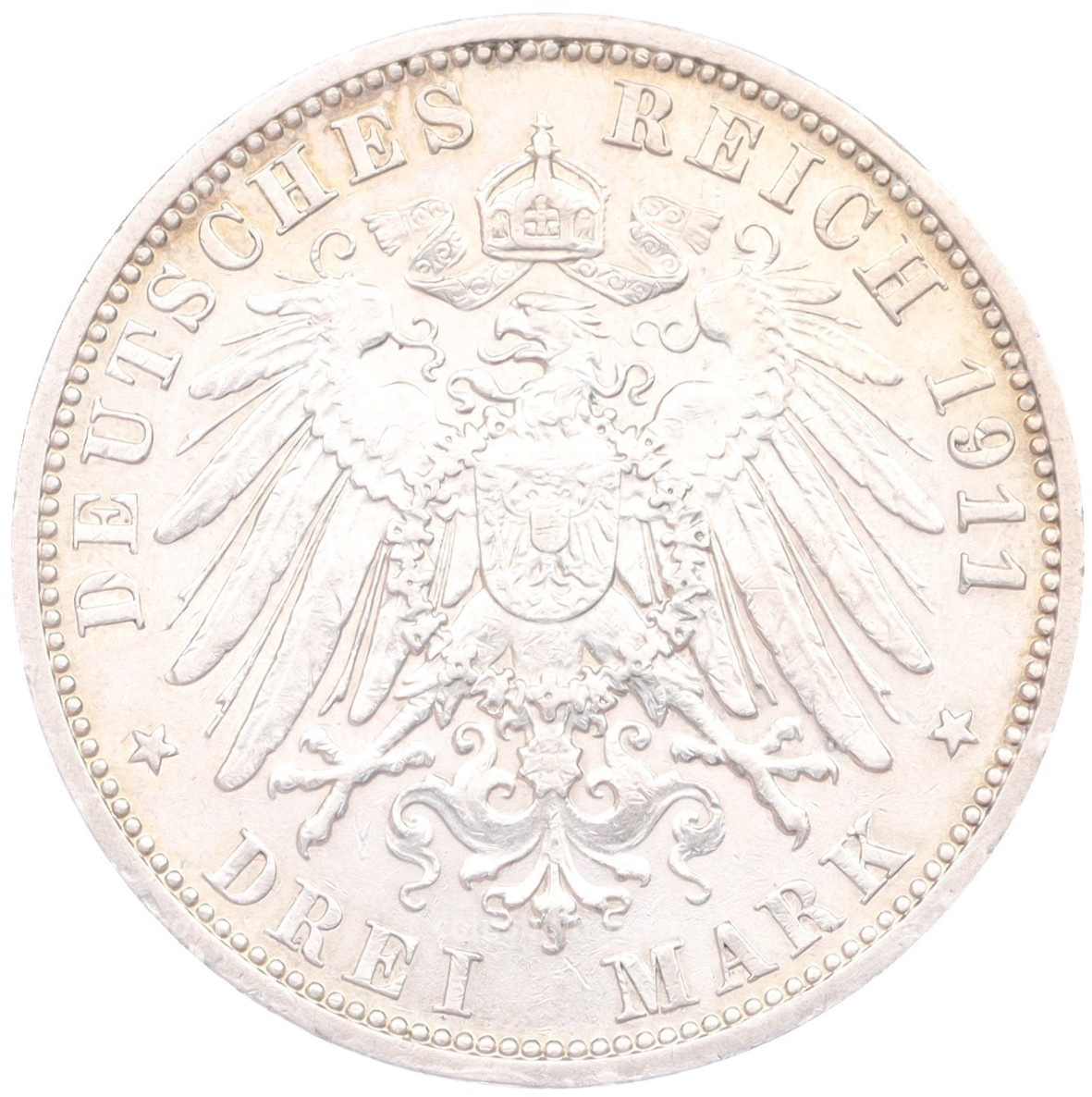 Монета 3 марки 1911 года А Германия (Пруссия) (аверс) Монета 3 марки 1911 года А Германия (Пруссия) (реверс)