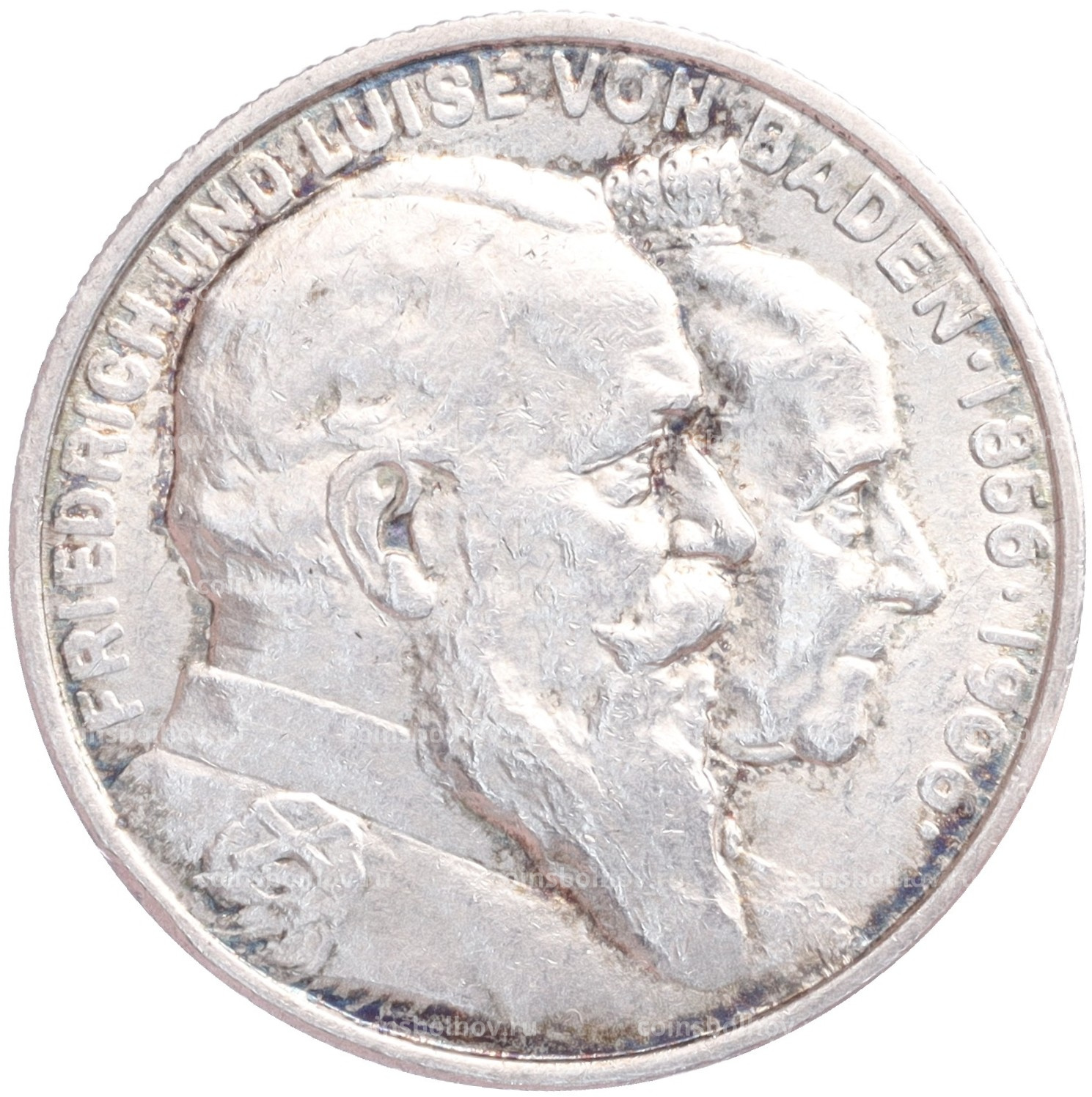 Монета 2 марки 1906 года Германия (Баден) «50 лет свадьбе Фридриха I и Луизы Прусской»