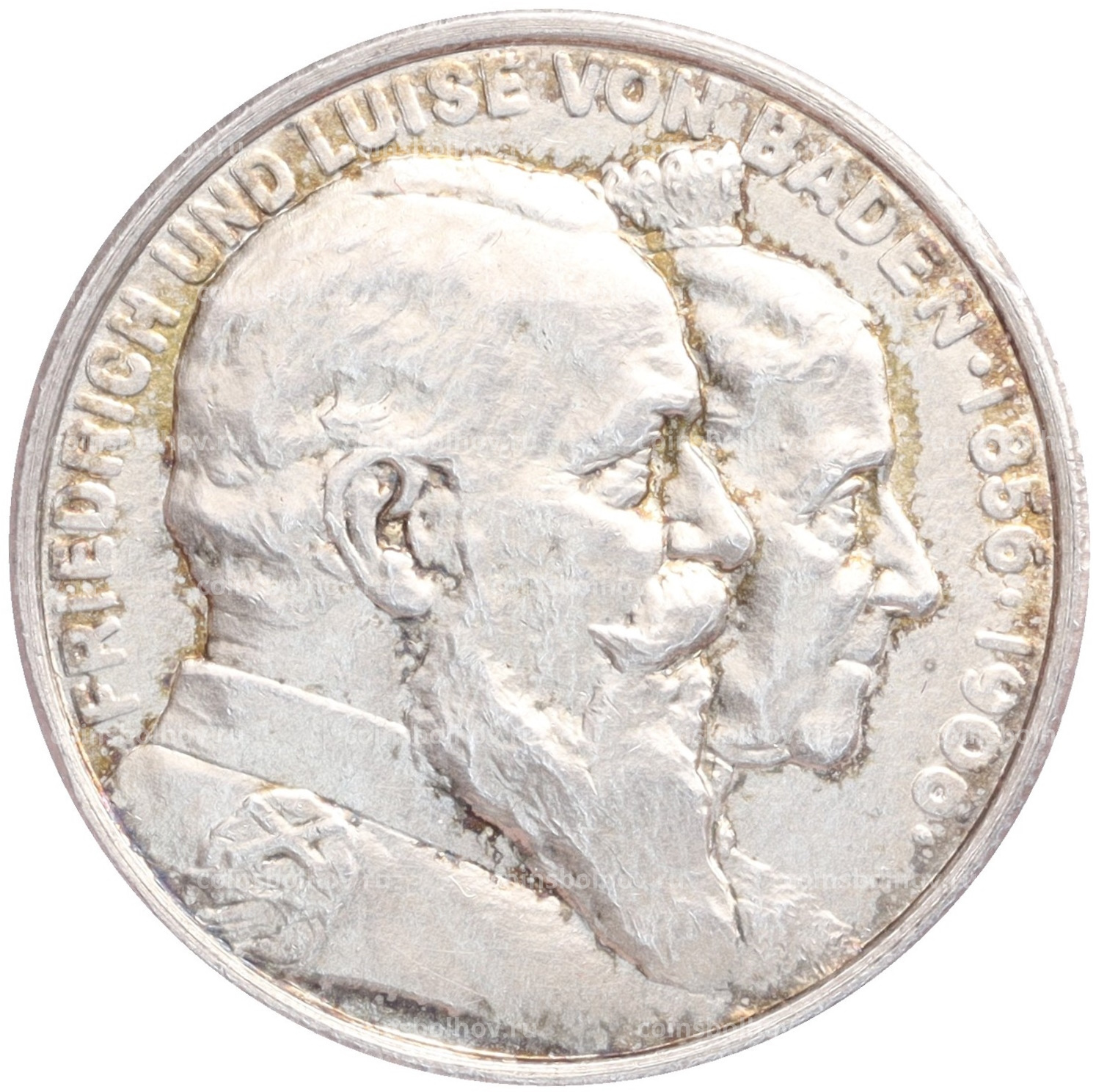 Монета 2 марки 1906 года Германия (Баден) «50 лет свадьбе Фридриха I и Луизы Прусской»