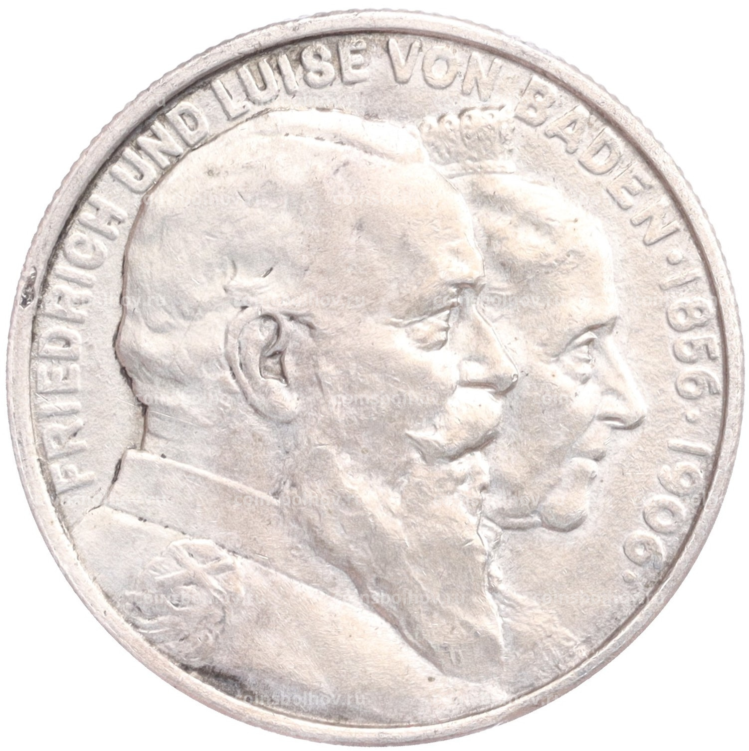 Монета 2 марки 1906 года Германия (Баден) «50 лет свадьбе Фридриха I и Луизы Прусской»