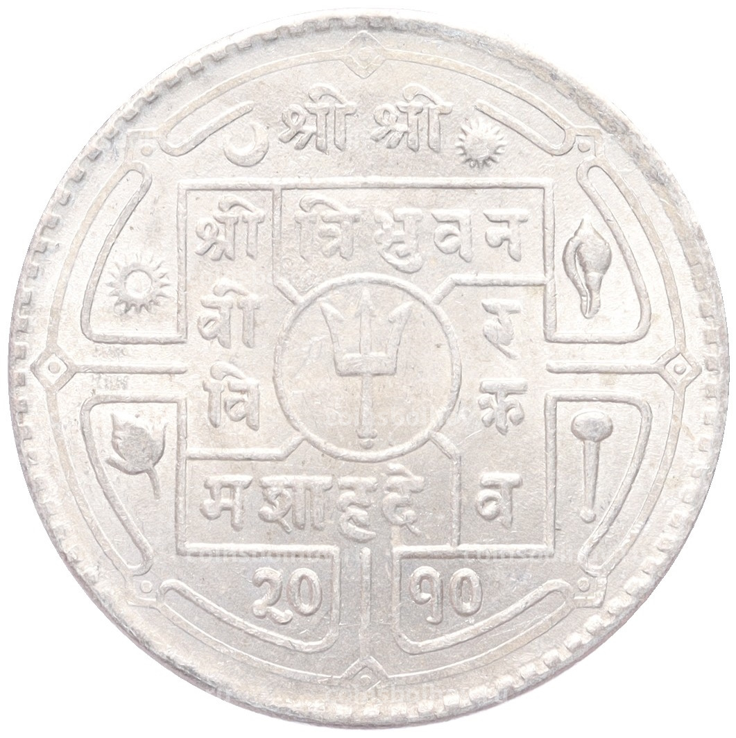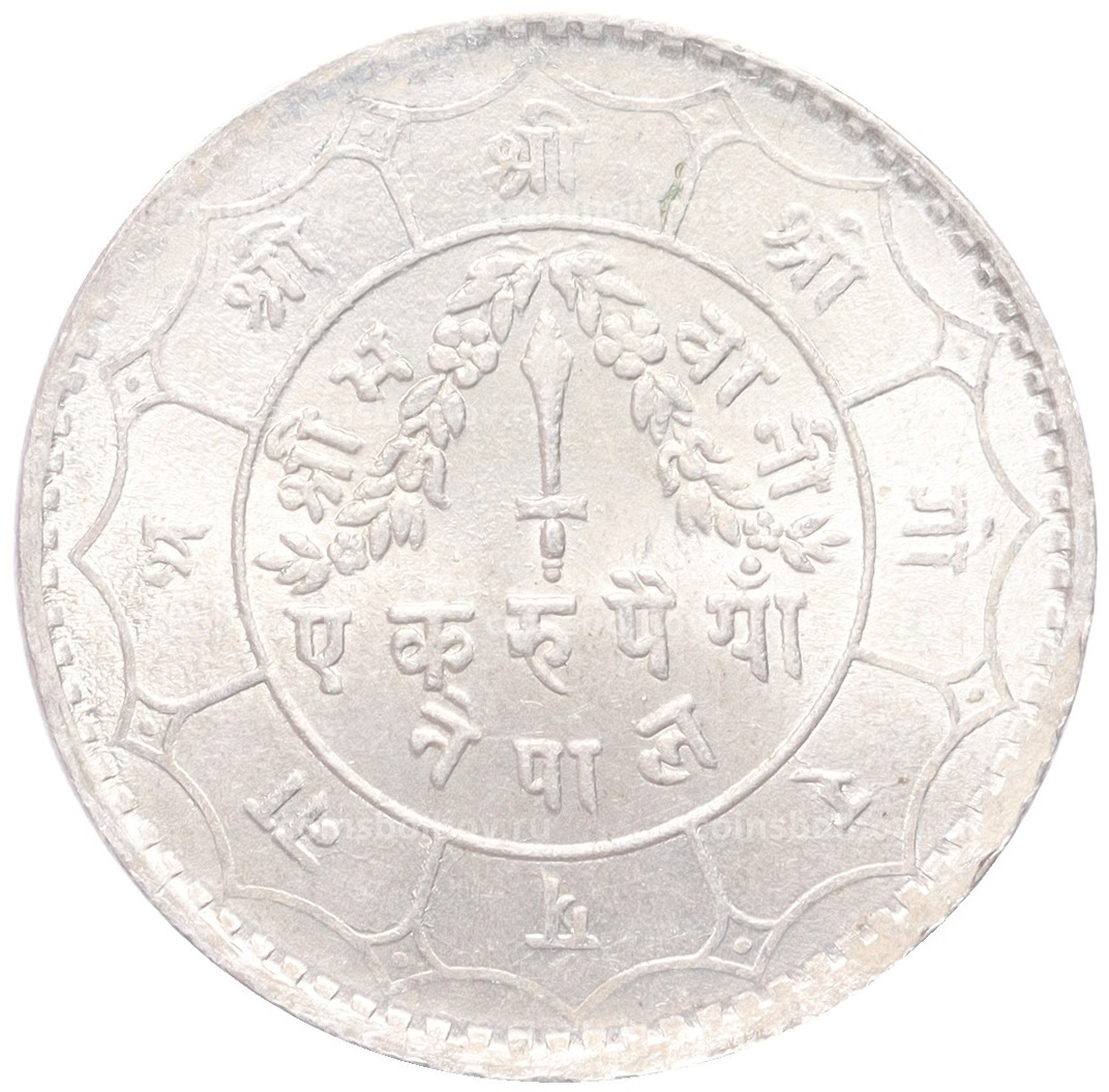 Монета 1 рупия 1953 года Непал (аверс) Монета 1 рупия 1953 года Непал (реверс)