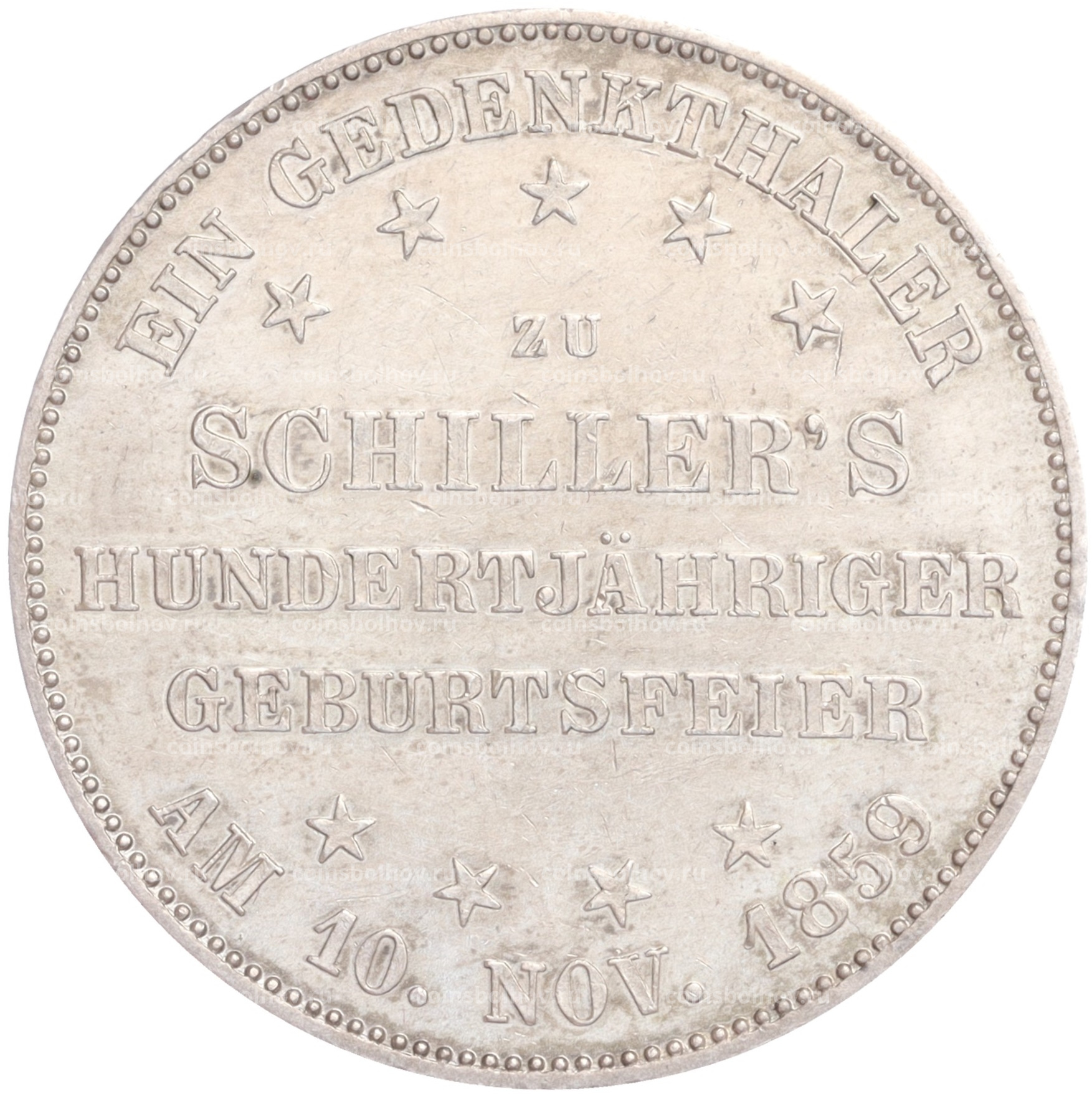 1 талер 1859 года Франкфурт «100 лет со дня рождения Фридриха Шиллера»
